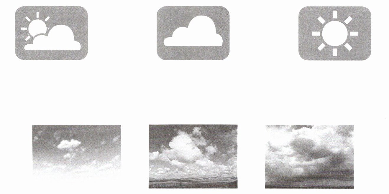 第二幅图(云量较多)连第一个图标(太阳和云,代表多云);