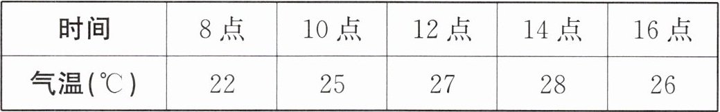 | 气温(℃) | 22 | 25 | 27 | 28 | 26 |