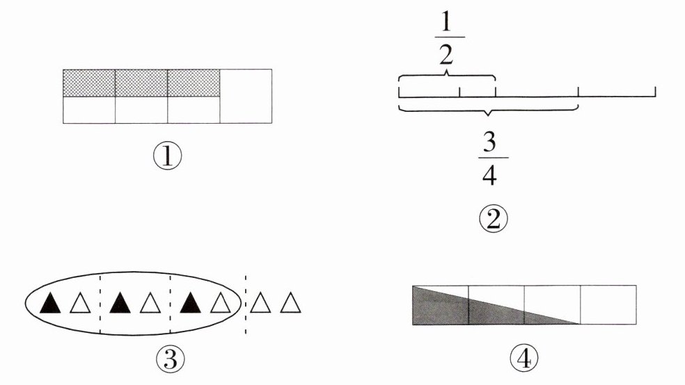 1. 下面各图中,能正确表示“$\frac{3}{4} × \frac{1}{2}$”的意义的是(