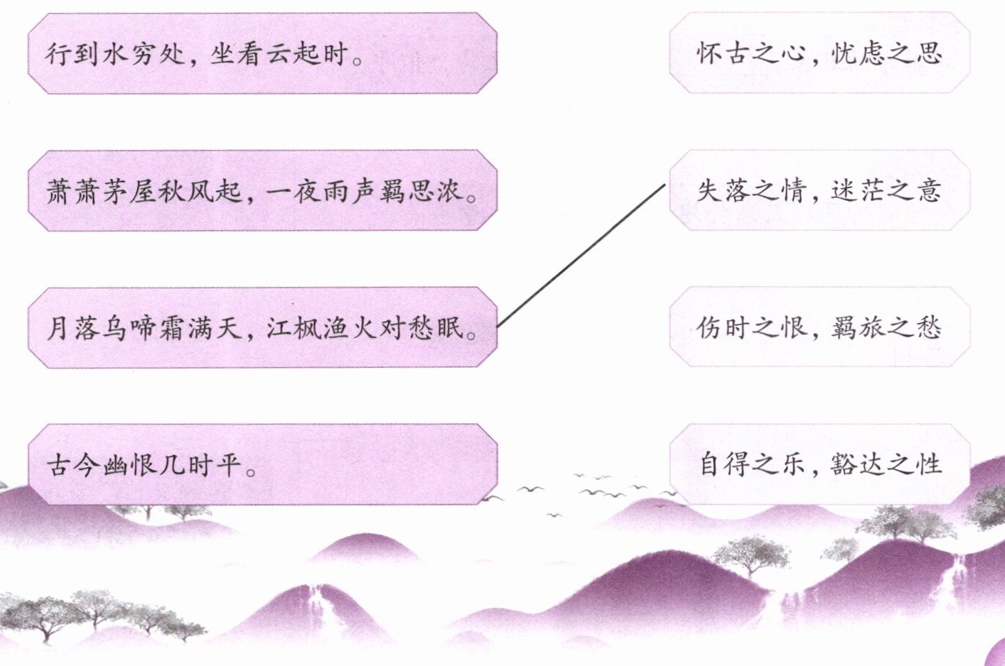 诗人借景抒情,咏诗抒怀。下面这些诗句分别表达了诗人怎样的情感?读一读,连一连。
