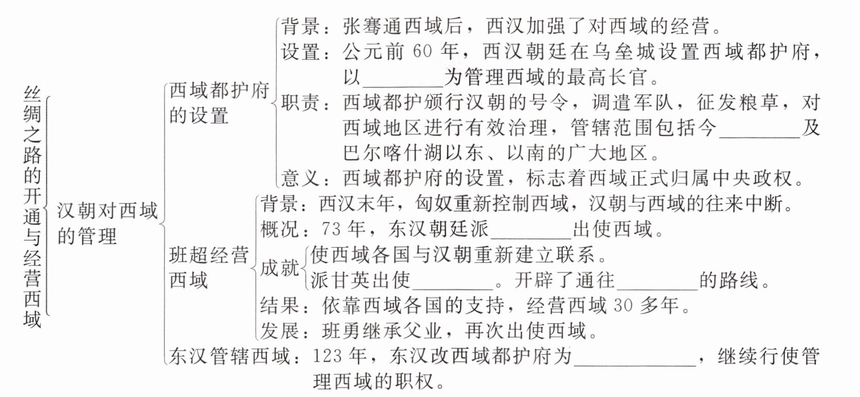 - 东汉管辖西域:123年,东汉改西域都护府为______,继续行使管理西域的职权。