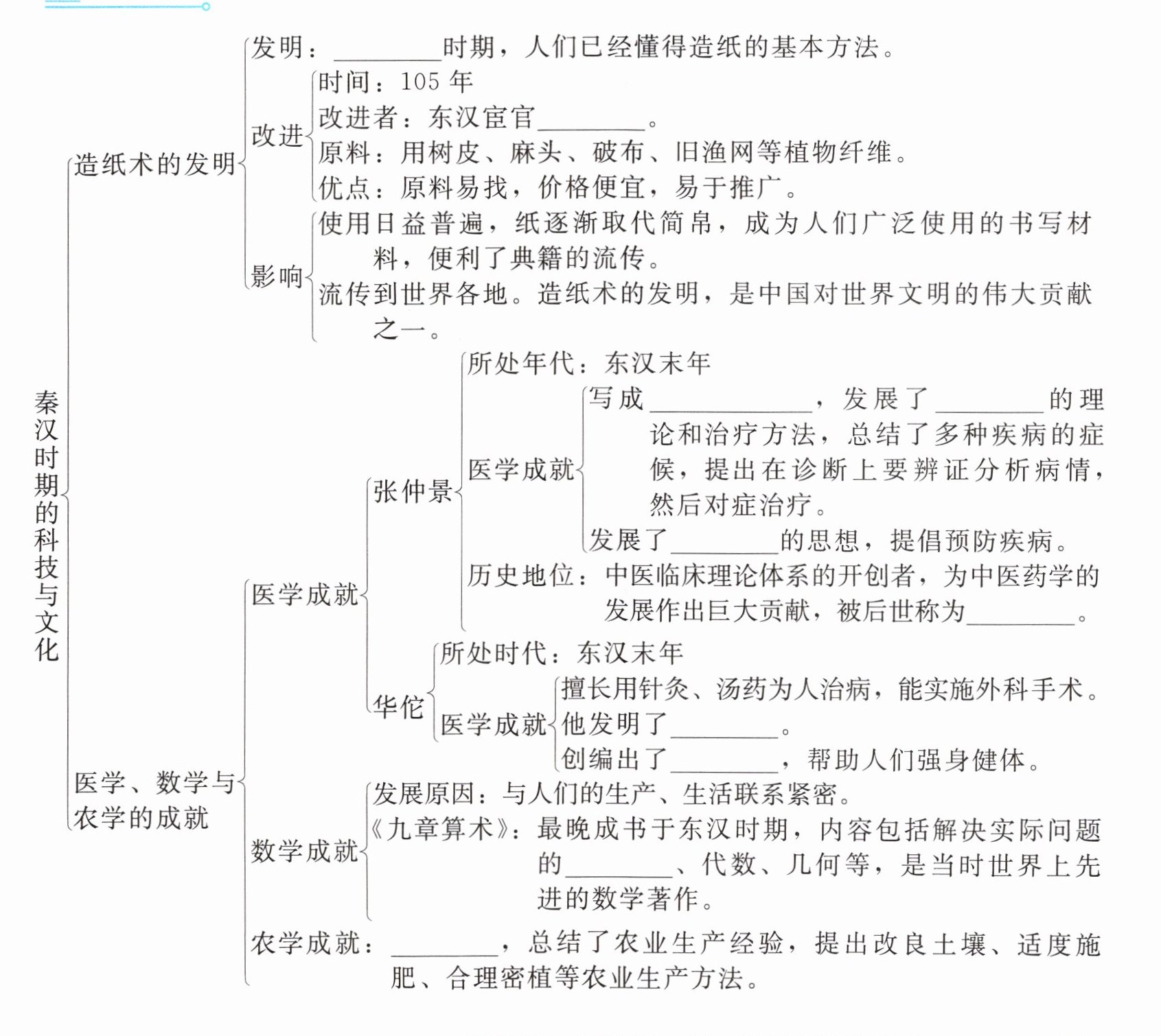 西汉 蔡伦 《伤寒杂病论》 中医学 “治未病” “医圣” “麻沸散” “五禽戏” 算术 《氾胜之书》 纪传体 黄帝 汉武帝 古代印度 两汉 东汉明帝