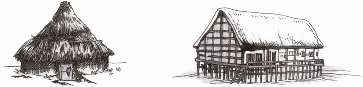 (1)河姆渡人会制作农业生产工具;半坡人过着定居生活。