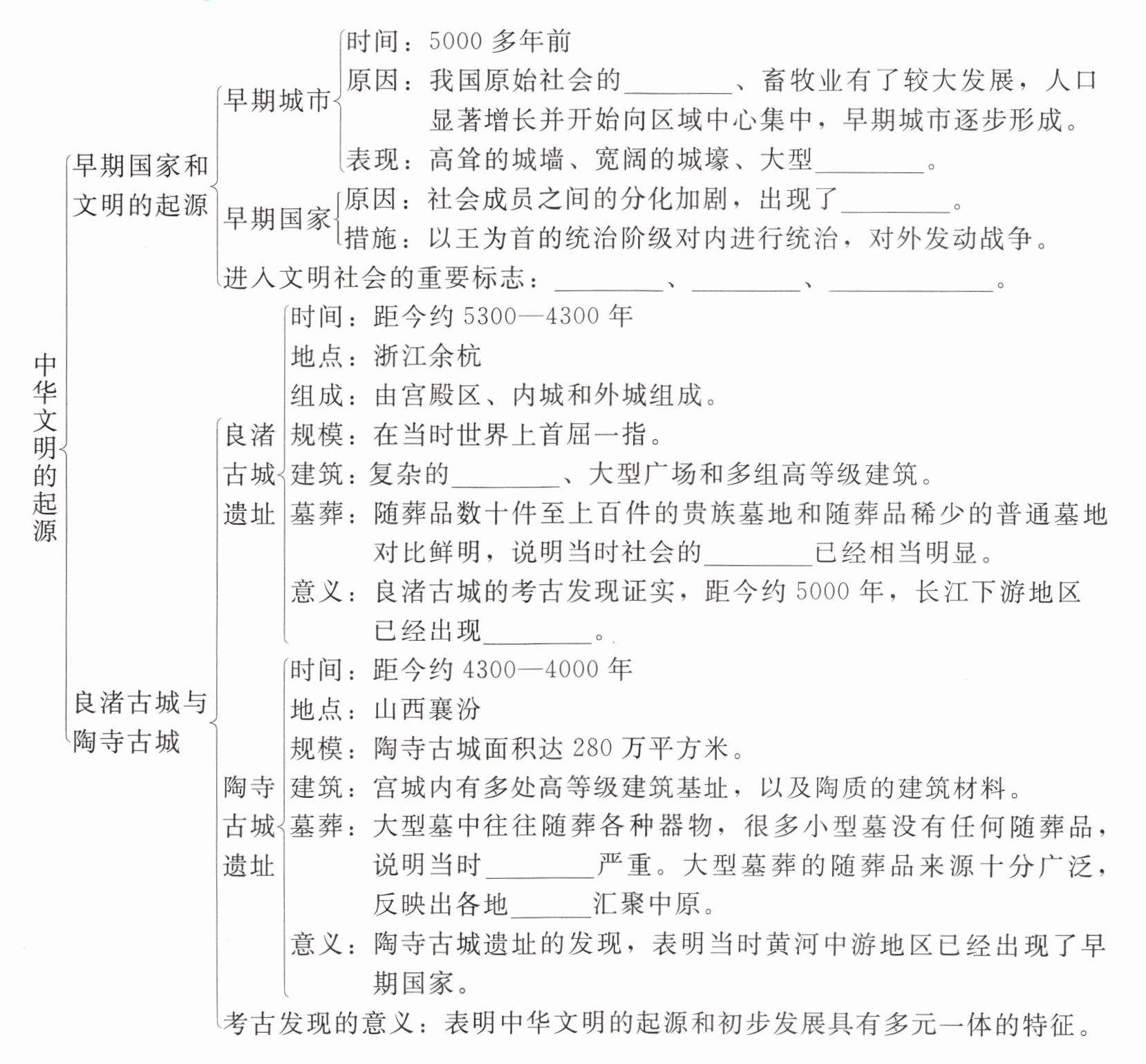 - 意义:良渚古城的考古发现证实,距今约5000年,长江下游地区已经出现______。