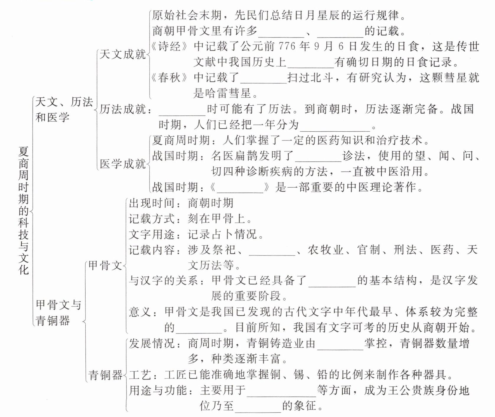 - 历法成就:____时可能有了历法。到商朝时,历法逐渐完备。战国时期,人们已经把一年分为____。