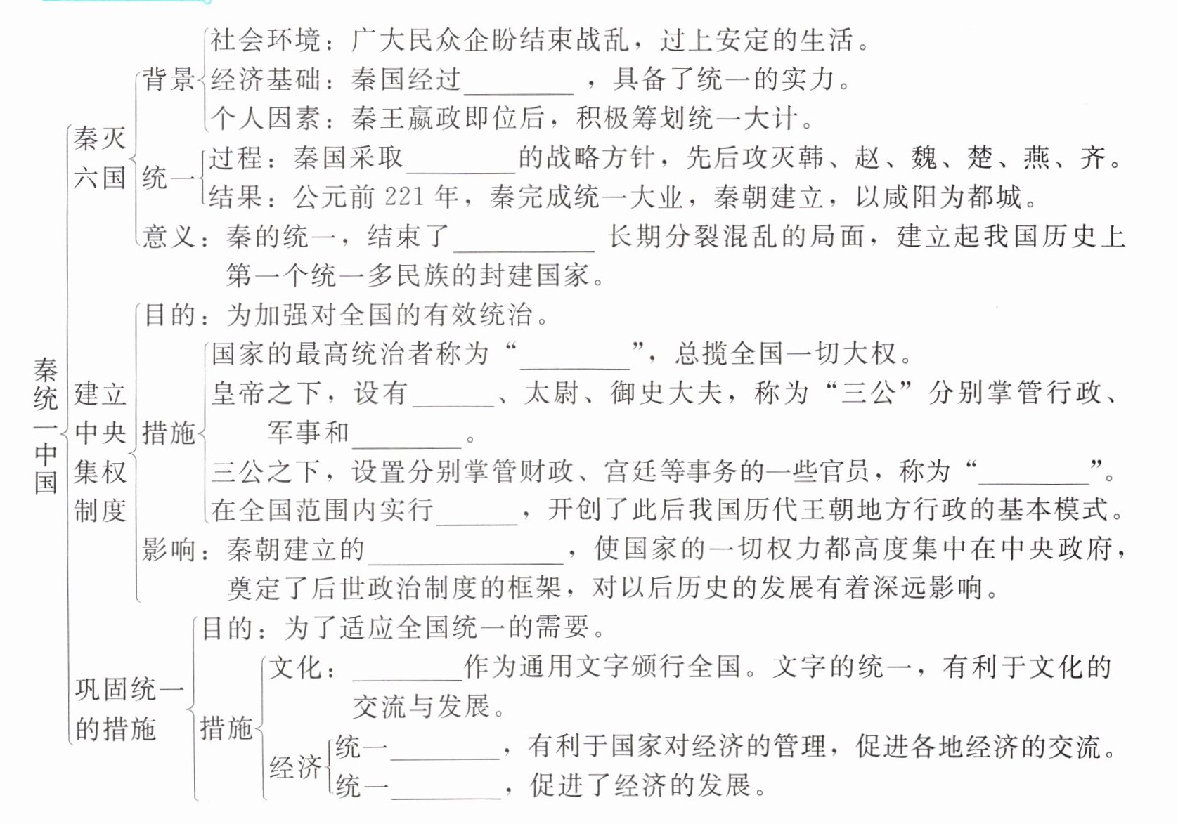 意义:秦的统一,结束了______长期分裂混乱的局面,建立起我国历史上第一个统一多民族的封建国家。
