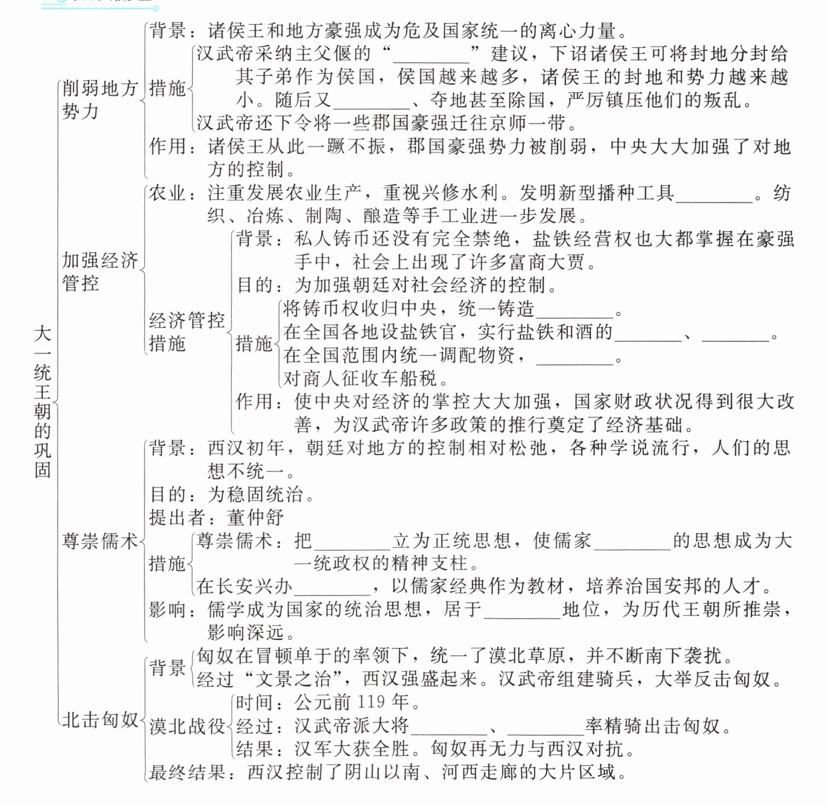 推恩 削爵 耧车 五铢钱 官营 专卖 平抑物价 儒家学说 忠君守礼 太学 主导 卫青 霍去病