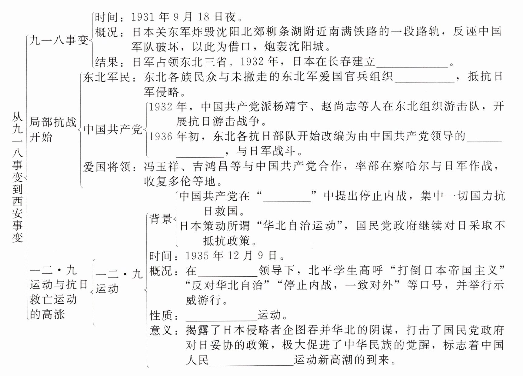 伪满洲国 抗日义勇军 东北抗日联军 八一宣言 中国共产党 爱国救亡 抗日救亡民主 抗日民族统一战线 傅作义 西安 周恩来