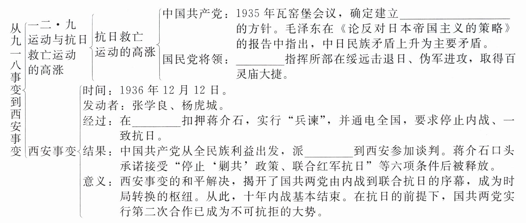 ”中提出停止内战,集中一切国力抗日救国。- 日本策动所谓“华北自治运动”,国民党政府继续对日采取不抵抗政策。