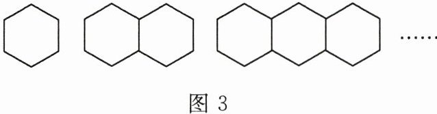10. 按如图3所示的方法用小棒摆正六边形,摆2个正六边形要11根小棒,摆3个正六边形要16根小棒,摆$n$个正六边形需要