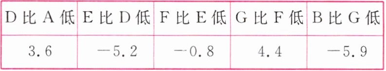 9. 【实际应用问题】在一条铁路建设项目中要测量$B$地高度,但不易测量,现知道$A地高度为6.3m$,我们在$A$,$B两地间找到合适的四个中间地点D$,$E$,$F$,$G$,每次测量结果如下表(单位:$m$):