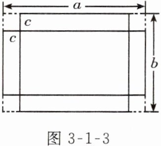 6. 【教材 P73 练习 4 变式】如图 3 - 1 - 3 所示的是一个长、宽分别为 $ a $,$ b $ 的长方形铁片,在铁片的四角各剪去一个边长为 $ c $ 的正方形($ 2c < b < a $),然后做成一个无盖的长方体盒子,用式子表示这个长方体盒子的体积.