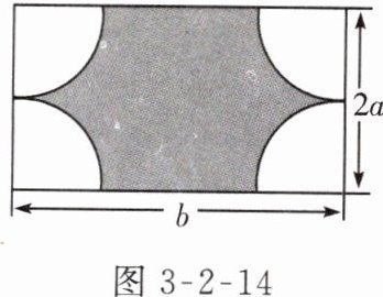 2. 【数图结合问题】如图 3-2-14,这是某小区的一块长为 $ b \mathrm{m} $、宽为 $ 2 a \mathrm{m} $ 的长方形草地,现在在该长方形的四个顶点处分别修建一个半径为 $ a \mathrm{m} $ 的扇形花台。