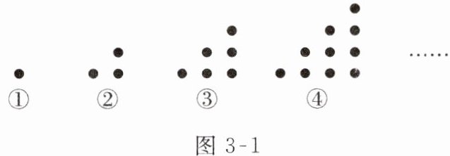 1. 把黑色棋子按如图 3 - 1 所示的规律拼图案,其中第①个图案中有 1 颗棋子,第②个图案中有 3 颗棋子,第③个图案中有 6 颗棋子,…,按此规律排列下去,则第⑥个图案中棋子的颗数为(