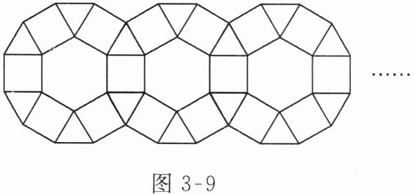 【观察思考】某公园中的一条小路使用六边形、正方形、三角形三种地砖按照如图3-9所示的方式铺设.