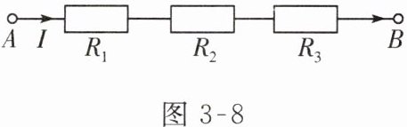 5. 【跨学科融合—物理】如图3-8,把$R_1$,$R_2$,$R_3$($\Omega$)三个电阻串联起来,线路$AB上的电流为I$(A),电压为$U$(V),则$U = IR_1 + IR_2 + IR_3$. 当$R_1 = 19.7\Omega$,$R_2 = 32.4\Omega$,$R_3 = 35.9\Omega$,$I = 2.5$A时,$U$的值为