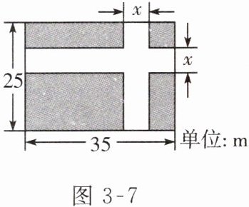 3. 某公园准备修建一块长方形草坪,长为35m,宽为25m. 并在草坪上修建如图3-7所示的十字路,已知十字路宽$x$m,则修建的十字路的面积是