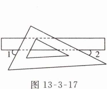 2. 如图 13 - 3 - 17,某同学将一块三角板叠放在直尺上,则 $\angle 1 + \angle 2 = $( )