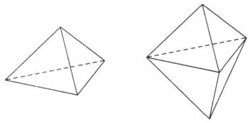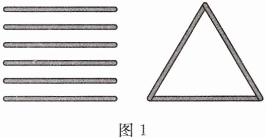 1.【空间观念】如图 1 所示,以 3 根等长的小棒为边,可以组成一个三角形,用 6 根等长的小棒为边最多可以组成几个等边三角形?9 根等长的小棒最多可以组成几个等边三角形?在平面内,用 6 根等长的小棒最多可以组成 2 个三角形,但在空间里却能组成 4 个等边三角形,因此本题要从空间去考虑.用 6 根等长的小棒能拼成边长为一根小棒长的 4 个等边三角形吗?用 9 根等长的小棒能拼成 7 个等边三角形吗?请你想一想,并画出图形.