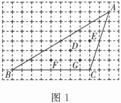 2. 如图1所示的网格由边长相同的小正方形组成,点A,B,C,D,E,F,G在小正方形的格点上,则$\triangle ABC$的重心是( )