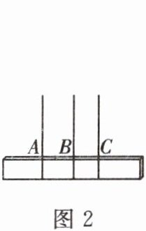 3. 如图2,乐乐用细线绑一块木板,然后提着细线使木板悬空. 乐乐发现,当将细线在A,C处捆绑木板时,木板不能水平悬空,而将细线在B处捆绑时,木板能水平悬空,则可以确定木板的重心在____处.