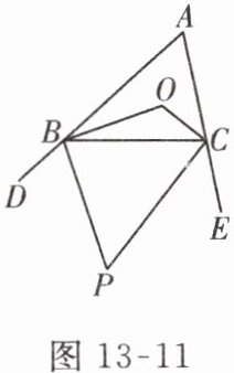 10. 如图 13 - 11,$\triangle ABC的两条内角平分线BO$,$CO相交于点O$,两条外角平分线$BP$,$CP相交于点P$。已知$\angle BOC = 120^{\circ}$,则$\angle P = $______。