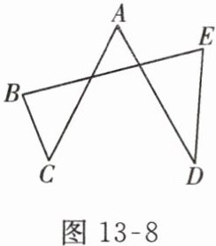 6. 小颖一笔画成了如图 13 - 8 所示的图形,若$\angle A = 60^{\circ}$,则$\angle B + \angle C + \angle D + \angle E = $( )