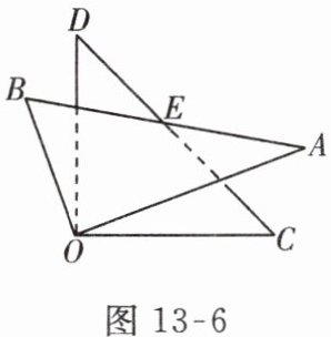 4. 如图 13 - 6,将一副三角板的直角顶点重合并部分重叠。若$\angle BOD = 20^{\circ}$,则$\angle AEC$的度数为( )