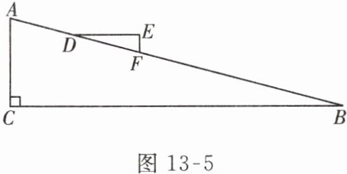 3. 在做物理实验时,一位同学研究一个小木块在斜坡上滑下时的运动状态。如图 13 - 5,在$Rt\triangle ABC$中,$\angle C = 90^{\circ}$,$\angle B = 15^{\circ}$,三角形小木块$DEF在斜坡AB$上,且$DE // BC$,$EF // AC$,则$\angle DFE$的度数是( )