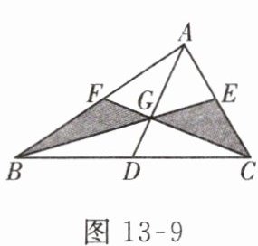 7. 如图 13 - 9,$G为\triangle ABC三边中线AD$,$BE$,$CF$的交点,$S_{\triangle ABC} = 12cm^{2}$,则阴影部分的面积为( )