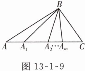 【探究拓展】如图 13 - 1 - 9 所示,在$ \triangle ABC $中$, A_1 , A_2 ,…, A_m $为 AC 边上不同的 m 个点。首先连接$ BA_1 ,$图中出现了 3 个不同的三角形;再连接$ BA_2 ,$图中便有 6 个不同的三角形……