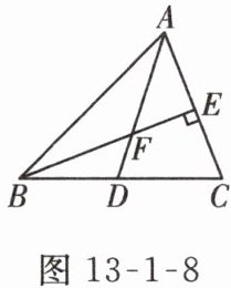 5. 如图 13 - 1 - 8,在 $ \triangle ABC $ 中,$ D $,$ E $ 分别是边 $ BC $,$ AC $ 上的点,连接 $ BE $,$ AD $,相交于点 $ F $,$ AC = AD $,$ BE \perp AC $,垂足为 $ E $。