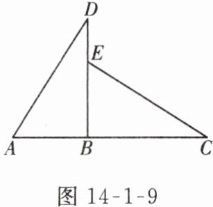 如图 14 - 1 - 9,已知$\triangle ABD\cong\triangle EBC$,$AB = 3cm$,$BC = 4.5cm$,且点$B在线段AC$上。