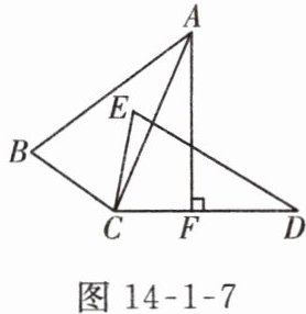 3. 如图 14 - 1 - 7,$\triangle ABC\cong\triangle DEC$,点$A和点D$是对应顶点,点$B和点E$是对应顶点,过点$A作AF\perp CD$,垂足为$F$,若$\angle BCE = 65^{\circ}$,则$\angle CAF$的度数为( )