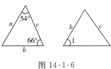 1. 【教材 P31 习题 3 变式】如图 14 - 1 - 6 是两个全等三角形,图中的字母表示三角形的边长,则$\angle 1$的度数是( )