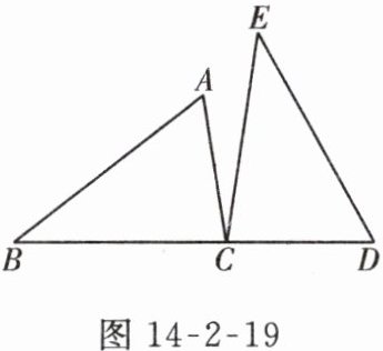 7. 如图14-2-19,点$C在线段BD$上,在$\triangle ABC和\triangle DEC$中,$\angle A= \angle D$,$AB= DE$,$\angle B= \angle E$。求证$\triangle ABC\cong\triangle DEC$。