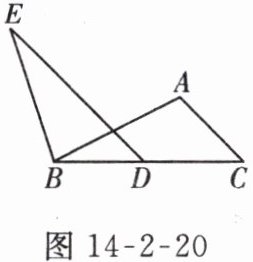 8. 如图14-2-20,点$D为线段BC$上一点,$BD= AC$,$\angle E= \angle ABC$,$DE// AC$。求证$DE= BC$。