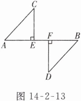 1. 如图14-2-13所示,已知$CE\perp AB$,$DF\perp AB$,垂足分别为$E$,$F$,$AC// DB$,且$CE= DF$,那么$\triangle AEC\cong\triangle BFD$的依据是( )