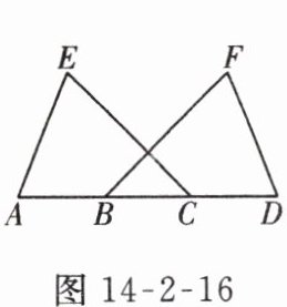4. 如图14-2-16,$AE= DF$,$\angle A= \angle D$,则只要添加一个条件:______,就能直接利用“AAS”判定$\triangle ACE\cong\triangle DBF$。