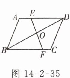 3. 如图 14 - 2 - 35,已知$AB = CD$,$AD = CB$,$O为BD$上任意一点,过点$O的直线分别交AD$、$CB于点E$、$F$。若$\angle DBC = 30^{\circ}$,$\angle BOF = 80^{\circ}$,则$\angle DEF= $______。