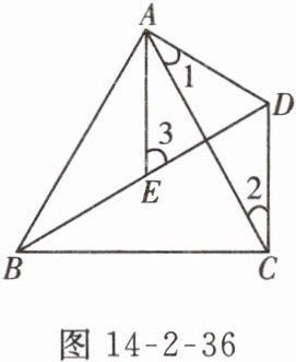 4. 如图 14 - 2 - 36,点$E在线段BD$上,已知$AB = AC$,$AD = AE$,$BE = CD$。