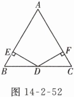 6. 如图 14 - 2 - 52,在$\triangle ABC$中,$D是BC$的中点,$DE\perp AB$,$DF\perp AC$,垂足分别为$E$,$F$,且$BE = CF$。求证$\angle B = \angle C$。