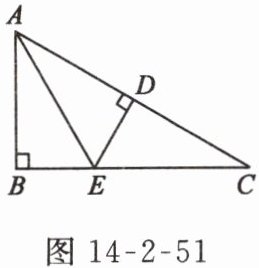 5. 如图 14 - 2 - 51,在$\triangle ABC$中,$\angle B = 90^{\circ}$,$AB = AD$,$DE\perp AC于点D$,若$\angle C = 28^{\circ}$,则$\angle AED = $______度。