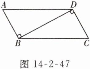 1. 如图 14 - 2 - 47,$AB\perp BD$,$CD\perp BD$,$AD = BC$,则能直接判定$Rt\triangle ABD≌Rt\triangle CDB$的依据是( )
