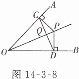 8. 如图14-3-8,OP平分∠AOB,PC⊥OA于点C,PD⊥OB于点D,CD与OP相交于点Q. 求证CQ= DQ.
