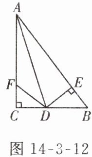 4. 如图14-3-12,在△ABC中,AD平分∠BAC,∠C= 90°,DE⊥AB于点E,点F在AC上,且DF= DB.