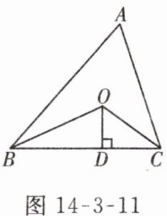 3. 如图14-3-11,已知△ABC的周长是30,BO,CO分别平分∠ABC和∠ACB,OD⊥BC于点D,且OD= 4,则△ABC的面积是______.
