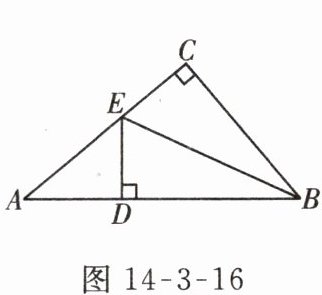 2. 如图 14 - 3 - 16,在 $ \triangle ABC $ 中,$ \angle ACB = 90^{\circ} $,$ ED \perp AB $ 于点 $ D $ 且 $ ED = EC $,如果 $ \angle A = 40^{\circ} $,那么 $ \angle EBD $ 的度数是( )