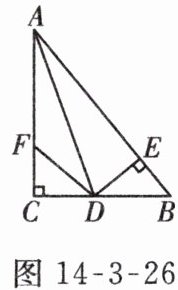 5. 如图 14 - 3 - 26,在 $ \triangle ABC $ 中,$ \angle C = 90^{\circ} $,$ DE \perp AB $ 于点 $ E $,$ \angle B + \angle AFD = 180^{\circ} $,点 $ F $ 在 $ AC $ 上,$ BD = DF $。求证:
