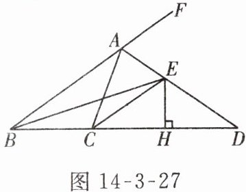 如图 14 - 3 - 27,在 $ \triangle ABC $ 中,点 $ D $ 在边 $ BC $ 的延长线上,$ \angle ACB = 110^{\circ} $,$ \angle ABC $ 的平分线交 $ AD $ 于点 $ E $,过点 $ E $ 作 $ EH \perp BD $,垂足为 $ H $,且 $ \angle CEH = 55^{\circ} $。